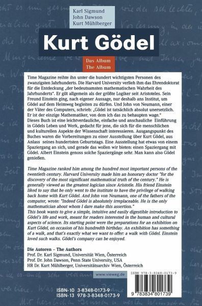 Dieses Buch ist eine leichtverdauliche, einfache und anschauliche Einführung in Gödels Leben und Werk, gedacht für jene, die sich für die menschlichen und kulturellen Aspekte der Wissenschaft interessieren. Ausgangspunkt des Buches waren die Vorbereitungen zu einer Ausstellung über Kurt Gödel aus Anlass seines hundertsten Geburtstags. Eine Ausstellung hat etwas von einem Spaziergang an sich, und gerade das wollen wir bieten: einen Spaziergang mit Gödel. Albert Einstein genoss solche Spaziergänge sehr. Man kann also Gödel genießen.