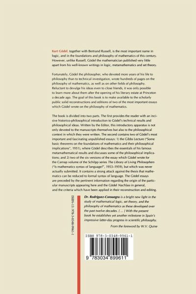 Kurt Gödel, together with Bertrand Russell, is the most important name in logic, and in the foundations and philosophy of mathematics of this century. However, unlike Russel, Gödel the mathematician published very little apart from his well-known writings in logic, metamathematics and set theory. Fortunately, Gödel the philosopher, who devoted more years of his life to philosophy than to technical investigation, wrote hundreds of pages on the philosophy of mathematics, as well as on other fields of philosophy. It was only possible to learn more about his philosophical works after the opening of his literary estate at Princeton a decade ago. The goal of this book is to make available to the scholarly public solid reconstructions and editions of two of the most important essays which Gödel wrote on the philosophy of mathematics. The book is divided into two parts. The first provides the reader with an incisive historico-philosophical introduction to Gödel's technical results and philosophical ideas. Written by the Editor, this introductory apparatus is not only devoted to the manuscripts themselves but also to the philosophical context in which they were written. The second contains two of Gödel's most important and fascinating unpublished essays: 1) the Gibbs Lecture ("Some basic theorems on the foundations of mathematics and their philosophical implications", 1951); and 2) two of the six versions of the essay which Gödel wrote for the Carnap volume of the Schilpp series The Library of Living Philosophers ("Is mathematics syntax of language?", 1953-1959).