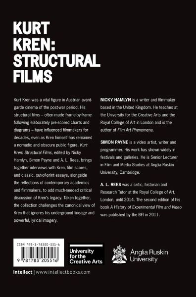 Kurt Kren was a vital figure in Austrian avant-garde cinema of the postwar period. His structural films-often shot frame-by-frame following elaborately prescored charts and diagrams-have influenced filmmakers for decades, even as Kren himself remained a nomadic and obscure public figure. Kurt Kren, edited by Nicky Hamlyn, Simon Payne, and A. L. Rees, brings together interviews with Kren, film scores, and classic, out-of-print essays, alongside the reflections of contemporary academics and filmmakers, to add much-needed critical discussion of Kren's legacy. Taken together, the collection challenges the canonical view of Kren that ignores his underground lineage and powerful, lyrical imagery.