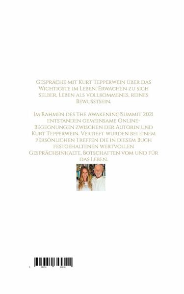 Neu-Erscheinung 2021:Gespräche mit Kurt Tepperwein über das Wichtigste im Leben: Erwachen zu sich selber, Leben als vollkommenes, reines Bewusstsein.Im Rahmen des The Awakening!Summit entstanden gemeinsame Online-Begegnungen zwischen der Autorin und Kurt Tepperwein. Vertieft wurden bei einem persönlichen Treffen die in diesem Buch festgehaltenen wertvollen Gesprächsinhalte, Botschaften vom und für das Leben.