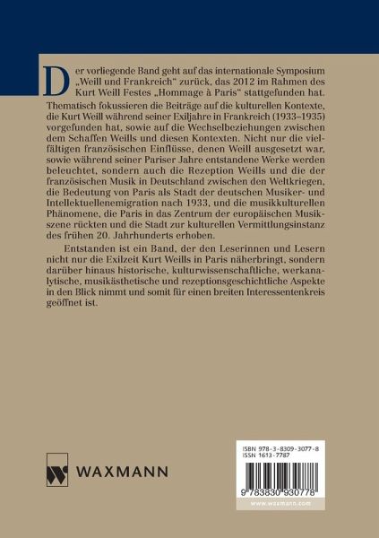 Entstanden ist ein Band, der den Leserinnen und Lesern nicht nur die Exilzeit Kurt Weills in Paris näherbringt, sondern darüber hinaus historische, kulturwissenschaftliche, werkanalytische, musikästhetische und rezeptionsgeschichtliche Aspekte in den Blick nimmt und somit für einen breiten Leserkreis geöffnet ist.