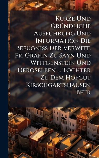 This volume, "Kurze Und GrÃ1/4ndliche AusfÃ1/4hrung Und Information Die Befugnià Der Verwitt. Fr. Gräfin Zu Sayn Und Wittgenstein Und Deroselben ... Tochter Zu Dem Hofgut Kirschgartshausen Betr," presents a detailed account regarding the rights and entitlements of the widowed Countess of Sayn and Wittgenstein and her daughter concerning the Kirschgartshausen estate. Likely originating from the 18th or 19th century, this historical record provides valuable insights into property law, inheritance practices, and the social and political dynamics of the time. The text offers a glimpse into the legal arguments and justifications surrounding the Countess's claims, shedding light on the complexities of aristocratic life and land ownership in a historical German context. Researchers interested in legal history, German nobility, or the intricacies of property disputes will find this volume to be a significant resource. This work has been selected by scholars as being culturally important, and is part of the knowledge base of civilization as we know it. This work was reproduced from the original artifact, and remains as true to the original work as possible. Therefore, you will see the original copyright references, library stamps (as most of these works have been housed in our most important libraries around the world), and other notations in the work. This work is in the public domain in the United States of America, and possibly other nations. Within the United States, you may freely copy and distribute this work, as no entity (individual or corporate) has a copyright on the body of the work. As a reproduction of a historical artifact, this work may contain missing or blurred pages, poor pictures, errant marks, etc. Scholars believe, and we concur, that this work is important enough to be preserved, reproduced, and made generally available to the public. We appreciate your support of the preservation process, and thank you for being an important part of keeping this knowledge alive and relevant.