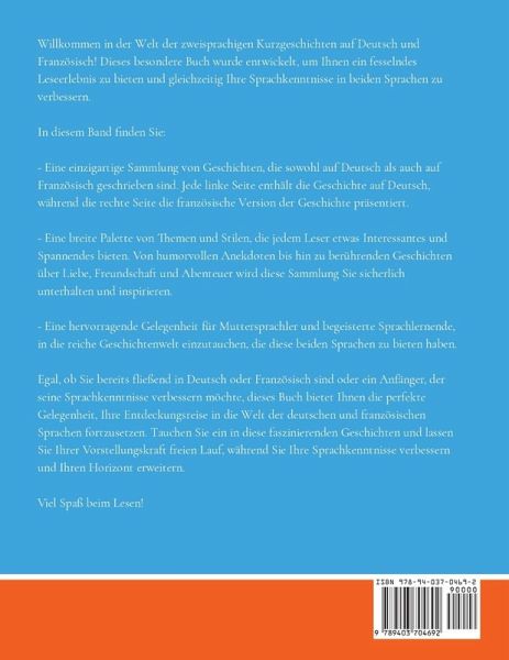 Dieses Buch öffnet Türen zu den faszinierenden Kulturen und Sprachen von Deutsch und Französisch durch parallel präsentierte Geschichten. Es ist wissenschaftlich fundiert, das Gehirn zu stimulieren und das Lernen zu beschleunigen. "Zweisprachige Entdeckungen" ist ideal für alle Sprachniveaus und stellt einen persönlichen Begleiter auf dem Weg zur Meisterung beider Sprachen dar. Von Humor bis Herz, es bietet eine reiche Vielfalt an Inhalten und ist eine wahre Freude für Sprachliebhaber, die die Magie der Sprachen entdecken möchten.