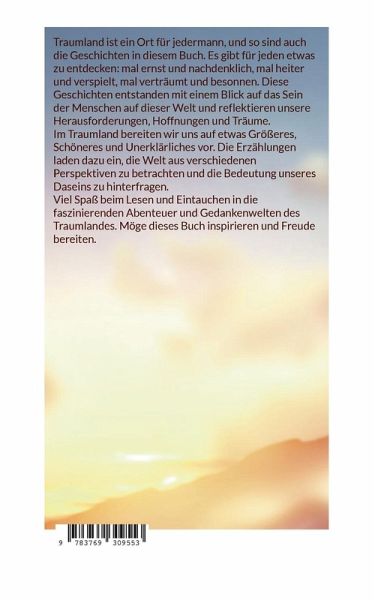 Traumland ist ein Ort für jedermann, und so sind auch die Geschichten in diesem Buch. Es gibt für jeden etwas zu entdecken: mal ernst und nachdenklich, mal heiter und verspielt, mal verträumt und besonnen. Diese Geschichten entstanden mit einem Blick auf das Sein der Menschen auf dieser Welt und reflektieren unsere Herausforderungen, Hoffnungen und Träume. Im Traumland bereiten wir uns auf etwas Größeres, Schöneres und Unerklärliches vor. Die Erzählungen laden dazu ein, die Welt aus verschiedenen Perspektiven zu betrachten und die Bedeutung unseres Daseins zu hinterfragen. Viel Spaß beim Lesen und Eintauchen in die faszinierenden Abenteuer und Gedankenwelten des Traumlandes. Möge dieses Buch inspirieren und Freude bereiten.
