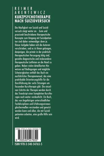 Die Häufigkeit von Suizid- und Suizidversuch steigt weiter an. - Gute und praxisnah beschriebene therapeutische Konzepte zum Umgang mit Suizidpatienten sind daher notwendiger denn je. Dieser Aufgabe haben sich die Autoren verschrieben, und es ist ihnen gelungen, denjenigen, die primär in der praktisch-therapeutischen Versorgung tätig sind, gezielte diagnostische und insbesondere therapeutische Leitlinien an die Hand zu geben. Neben vielen detaillierten Hinweisen auf Bedingungen und mögliche Schwierigkeiten enthält das Buch ein ausführliches Therapiemanual, das eine praktikable Orientierungshilfe für die Durchführung der sechs Sitzungen umfassenden Kurztherapie gibt. Die einzelnen Schritte der Therapie werden durch das Transkript einer kompletten Kurzpsychotherapie verdeutlicht.