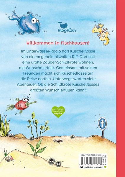 Ein Kinderbuch zum ersten Selbstlesen mit spannendem Meeres-Abenteuer. Im Unterwasser-Radio hört Kuschelflosse von einem geheimnisvollen Riff. Dort soll eine uralte Zauber-Schildkröte wohnen, die Wünsche erfüllt. Gemeinsam mit seinen Freunden macht sich Kuschelflosse auf die Reise dorthin. Unterwegs warten viele Abenteuer. Ob die Schildkröte Kuschelflosses größten Wunsch erfüllen kann? Weitere Bücher der Reihe: Kuschelflosse: Abenteuer tief im Meer - Die Blubber-Meisterschaft (Band 2)