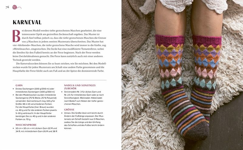 Die Socken im Buch sind alle für Größe 38 konzipiert, lassen sich jedoch auch ohne Vorkenntnisse leicht auf andere Größen umrechnen. So eignen sie sich sowohl für kleinere als auch größere Füße und können Unisex getragen werden. So können Sie ganz einfach Stricksocken für sich selbst und Ihre Lieben anfertigen, die viel Freude und warme Füße bringen werden.