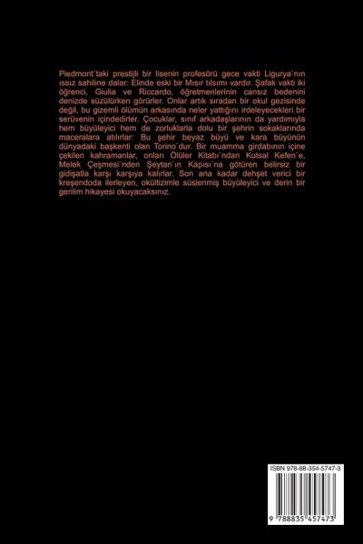 Piedmont`taki prestijli bir lisenin profesörü gece vakti Ligurya`n¿n ¿ss¿z sahiline dalar: Elinde eski bir M¿s¿r t¿ls¿m¿ vard¿r. ¿afak vakti iki ö¿renci, Giulia ve Riccardo, ö¿retmenlerinin cans¿z bedenini denizde süzülürken görürler. Onlar art¿k s¿radan bir okul gezisinde de¿il, bu gizemli ölümün arkas¿nda neler yatt¿¿¿n¿ irdeleyecekleri bir serüvenin içindedirler. Çocuklar, s¿n¿f arkadälar¿n¿n da yard¿m¿yla hem büyüleyici hem de zorluklarla dolu bir ¿ehrin sokaklar¿nda maceralara at¿l¿rlar: Bu ¿ehir beyaz büyü ve kara büyünün dünyadaki bäkenti olan Torino`dur. Bir muamma girdab¿n¿n içine çekilen kahramanlar, onlar¿ Ölüler Kitab¿`ndan Kutsal Kefen`e, Melek Çe¿mesi`nden ¿eytan`¿n Kap¿s¿`na götüren belirsiz bir gidi¿atla kar¿¿ kar¿¿ya kal¿rlar. Son ana kadar deh¿et verici bir kre¿endoda ilerleyen, okültizimle süslenmi¿ büyüleyici ve derin bir gerilim hikayesi okuyacaks¿n¿z.