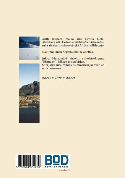 Antti Roineen matka aina Leviltä Etelä-Afrikkaan asti. Tarinassa vilahtaa Venäjän mafia, nykyaikaiset merirosvot sekä Afrikan villi luonto. Nautinnollinen nojatuolimatka odottaa. Jukka Murtomäki kirjoitti esikoisteoksen " Elämä on" jälkeen toisen kirjan. Se ei ala siitä mihin ensimmäinen päättyi, vaan on oma tarinansa. ISBN-13: 9789524981279