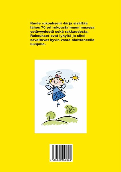 Kuule rukoukseni -kirja sisältää lähes 70 eri rukousta muun muassa ystävyydestä sekä rakkaudesta. Rukoukset ovat lyhyitä ja siksi soveltuvat hyvin vasta aloittaneelle lukijalle.
