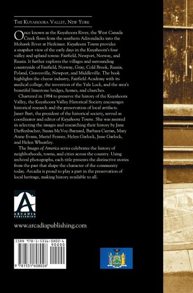 Once known as the Kuyahoora River, the West Canada Creek flows from the southern Adirondacks into the Mohawk River at Herkimer. Kuyahoora Towns provides a snapshot view of the early days in the Kuyahoora's four valley and upland towns: Fairfield, Newport, Norway, and Russia. It further explores the villages and surrounding countryside of Fairfield, Norway, Gray, Cold Brook, Russia, Poland, Gravesville, Newport, and Middleville. The book highlights the cheese industry, Fairfield Academy with its medical college, the invention of the Yale Lock, and the area's beautiful limestone bridges, homes, and churches.