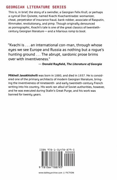 This is, in brief, the story of a swindler, a Georgian Felix Krull, or perhaps a cynical Don Quixote, named Kvachi Kvachantiradze: womanizer, cheat, perpetrator of insurance fraud, bank-robber, associate of Rasputin, filmmaker, revolutionary, and pimp. Though originally denounced as pornographic, Kvachi's tale is one of the great classics of twentieth-century Georgian literature--and a hilarious romp to boot.