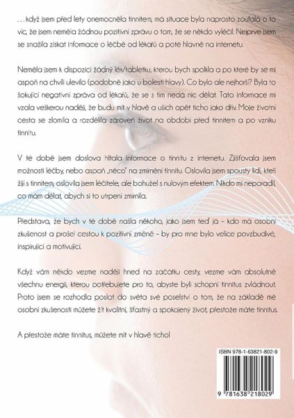 ...kdyz jsem pred lety onemocnela tinnitem, má situace byla naprosto zoufalá o to víc, ze jsem nemela zádnou pozitivní zprávu o tom, ze se nekdo vylécil. Nejprve jsem se snazila získat informace o lécbe od lékaru a poté hlavne na internetu. Nemela jsem k dispozici zádný lék/tabletku, kterou bych spolkla a po které by se mi aspon na chvíli ulevilo (podobne jako u bolesti hlavy). Co bylo ale nejhorSí? Byla to Sokující negativní zpráva od lékaru, ze se s tím nedá nic delat. Tato informace mi vzala veSkerou nadeji, ze budu mít v hlave a uSích opet ticho jako drív. Moje zivotní cesta se zlomila a rozdelila zároven zivot na období pred tinnitem a po vzniku tinnitu. V té dobe jsem doslova hltala informace o tinnitu z internetu. ZjiStovala jsem moznosti lécby, nebo aspon "neco" na zmírnení tinnitu. Oslovila jsem spousty lidí, kterí zijí s tinnitem, oslovila jsem lécitele, ale bohuzel s nulovým efektem. Nikdo mi neporadil, co mám delat, abych si to utrpení zmírnila. Predstava, ze bych v té dobe naSla nekoho, jako jsem ted já - kdo má osobní zkuSenost a proSel cestou k pozitivní zmene - by pro mne bylo velice povzbudivé, inspirující a motivující. Kdyz vám nekdo vezme nadeji hned na zacátku cesty, vezme vám absolutne vSechnu energii, kterou potrebujete pro to, abyste byli schopni tinnitus zvládnout. Proto jsem se rozhodla poslat do sveta své poselství o tom, ze na základe mé osobní zkuSenosti muzete zít kvalitní, Stastný a spokojený zivot, prestoze máte tinnitus. A prestoze máte tinnitus, muzete mít v hlave ticho!