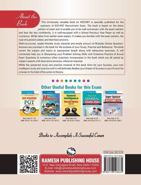 This comprehensive book is specially developed for the candidates of Kendriya Vidyalaya Sangathan: PGT (History) Recruitment Exam. This book includes Model Paper (Solved) & Study Material for the purpose of practice of questions based on the latest pattern of the examination. Detailed Explanatory Answers have also been provided for the selected questions for Better Understanding of the Candidates