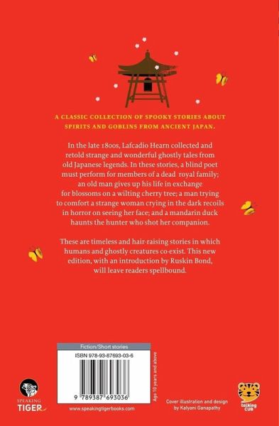 A classic collection of spooky stories about spirits and goblins from ancient Japan. In the late 1800s, Lafcadio Hearn collected and retold strange and wonderful ghostly tales from old Japanese legends. In these stories, a blind poet must perform for members of a dead royal family; an old man gives up his life in exchange for blossoms on a wilting cherry tree; a man trying to comfort a strange woman crying in the dark recoils in horror on seeing her face; and a mandarin duck haunts the hunter who shot her companion. These are timeless and hair-raising stories in which humans and ghostly creatures co-exist. This new edition, with an introduction by Ruskin Bond, will leave readers spellbound.