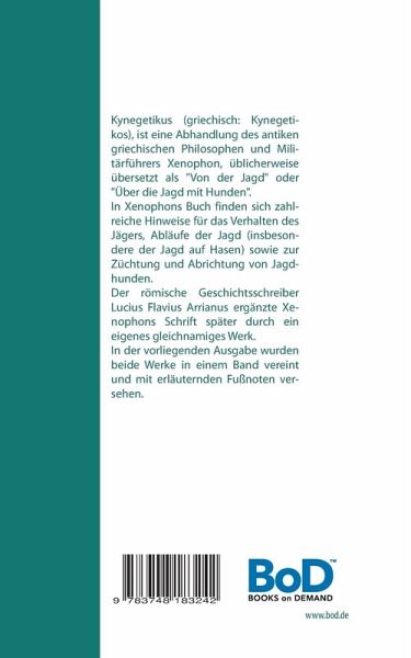 Kynegetikus (griechisch: Kynegetikos), ist eine Abhandlung des antiken griechischen Philosophen und Militärführers Xenophon, üblicherweise übersetzt als "Von der Jagd" oder "Über die Jagd mit Hunden".In Xenophons Buch finden sich zahlreiche Hinweise für das Verhalten des Jägers, Abläufe der Jagd (insbesondere der Jagd auf Hasen) sowie zur Züchtung und Abrichtung von Jagdhunden.Der römische Geschichtsschreiber Lucius Flavius Arrianus ergänzte Xenophons Schrift später durch ein eigenes gleichnamiges Werk.In der vorliegenden Ausgabe wurden beide Werke in einem Band vereint und mit erläuternden Fußnoten versehen.
