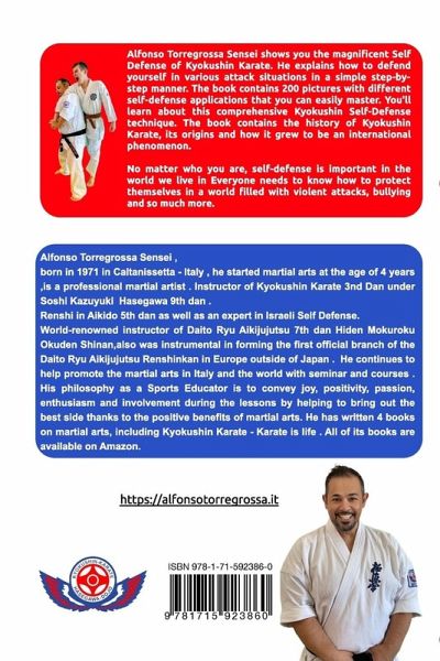 The book is published in English by Alfonso Torregrossa, Shihan of Daito Ryu Aikijujutsu Renshinkan 7th dan and Instructor of Kyokushin Karate 3nd Dan under Soshi Kazuyuki Hasegawa 9th dan , one of the most highly respected and influential Karateka in the world of the Kyokushin Karate . Alfonso Torregrossa has written several books on martial arts , including Karate is life - Kyokushin Karate . Mas Oyama he creatively developed Kyokushin Karate through the wealth of knowledge and experiences he attained from a variety of martial art sources. Sosai Oyama was very proficient in Daito-Ryu-Aiki-Jitsu (his direct instructor was Kotaro Yoshida), It is from this martial art discipline that a majority of Sosai Oyama's self-defense movements and tech- niques were derived and developed from. Sosai Oyama teached this technique during his life, but during the 80's years he develloped more in the fight competition side, more populary, it's for that today Kyokushin is a lot of based on the competition. Some school practice self defense Kyokushin, but in generaly, it is unfortunately forget. The job of Sensei Alfonso is to bring his teachings to light, that's why he wrote this book. Alfonso Torregrossa Sensei shows you the magnificent Self Defense of Kyokushin Karate ¿¿¿ ¿¿¿¿¿ . He explains how to defend yourself in various attack situations in a simple step-by-step manner. The book contains 200 pictures with different self-defense applications that you can easily master. You'll learn about this comprehensive Kyokushin Self-Defense technique. The book contains the history of Kyokushin Karate, its origins and how it grew to be an international phenomenon. No matter who you are, self-defense is important in the world we live in Everyone needs to know how to protect themselves in a world filled with violent attacks, bullying and so much more.