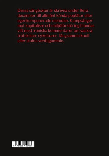 Dessa sångtexter är skrivna under flera decennier och ofta till egenkomponerade melodier och ackord. Kampsånger mot kapitalism och miljöförstöring blandas vilt med ironiska kommentarer om vackra trotskister, cykelturer, sexuella anspelningar och stulna ventilgummin.
