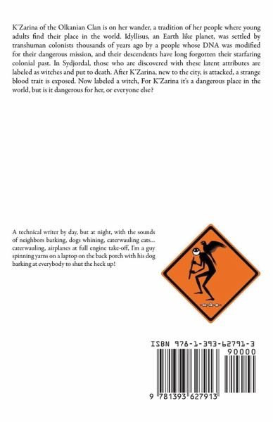 K'Zarina of the Olkanian Clan is on her wander, a tradition of her people where young adults find their place in the world. Idyllisus, an Earth like planet, was settled by transhuman colonists thousands of years ago by a people whose DNA was modified for their dangerous mission, and their descendents have long forgotten their starfaring colonial past. In Sydjordal, those who are discovered with these latent attributes are labeled as witches and put to death. After K'Zarina, new to the city, is attacked, a strange blood trait is exposed. Now labeled a witch, for K'Zarina it's a dangerous place in the world, but is it dangerous for her, or everyone else?