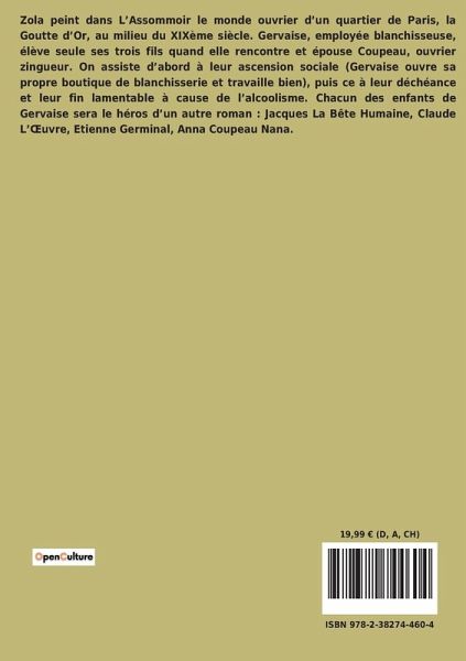 "L'Assommoir" d'Émile Zola est un roman naturaliste qui explore la vie de Gervaise Macquart, une blanchisseuse vivant à Paris sous le Second Empire. Le récit s'ouvre sur l'abandon de Gervaise par son compagnon Lantier, qui la laisse seule avec leurs deux enfants. Déterminée à s'en sortir, Gervaise trouve du travail dans une blanchisserie et rêve d'ouvrir son propre établissement. Elle rencontre Coupeau, un ouvrier zingueur, avec qui elle se marie. Leur vie semble évoluer positivement, mais un accident de Coupeau et sa convalescence prolongée plongent la famille dans la précarité. La situation se dégrade lorsque Coupeau sombre dans l'alcoolisme, entraînant Gervaise dans une spirale de déchéance. Le roman dépeint avec une précision crue les effets destructeurs de l'alcool et de la pauvreté sur les individus et leurs relations. Zola utilise le cadre du lavoir pour illustrer la solidarité et les tensions entre les femmes de la classe ouvrière. À travers le parcours tragique de Gervaise, l'auteur critique les conditions sociales de l'époque et met en lumière les forces implacables qui écrasent les aspirations des plus démunis. "L'Assommoir" est une uvre poignante qui interroge la responsabilité individuelle et collective face à la misère sociale.