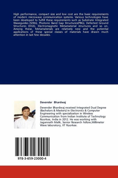 High performance, compact size and low cost are the basic requirements of modern microwave communication systems. Various technologies have been developed to fulfill these requirements such as Substrate Integrated Waveguides (SIWs), Photonic Band Gap Structures(PBG), Defected Ground Structures (DGS), Electromagnetic Metamaterial structures and so on. Among these, Metamaterials are relatively new and the potential applications of these special classes of materials have drawn much attention in last few decades.