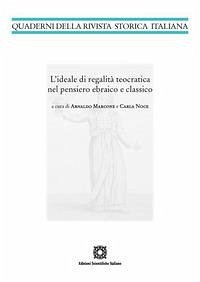 In questo quaderno si discute del concetto di teocrazia, a partire dalla comparsa del termine in un passo del Contra Apionem di Flavio Giuseppe. Si è anche affrontato, secondo una pluralità di punti di vista, in che termini la teocrazia fosse considerata una forma alternativa ad altre forme di governo a prescindere dal fatto che il neologismo coniato da Flavio Giuseppe non abbia avuto fortuna nella letteratura immediatamente successiva. Si sono inoltre affrontati alcuni case-studies indicatori di differenti modelli teocratici e del complesso tema della regalità nel IV secolo come ben risulta dal caso dell'imperatore Giuliano. Un saggio specifico è dedicato alla storia e alla funzione del termine teocrazia da Flavio Giuseppe a Giambattista Vico. Das Urheberrecht an bibliographischen und produktbeschreibenden Daten und an den bereitgestellten Bildern liegt bei Informazioni Editoriali, I.E. S.r.l., oder beim Herausgeber oder demjenigen, der die Genehmigung erteilt hat. Alle Rechte vorbehalten.