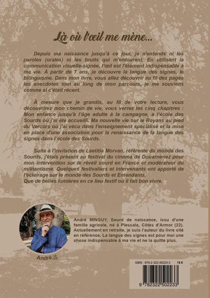 André Minguy, Sourd de naissance, issu d'une famille agricole, né à Plessala, Côtes d'Armor (22). Actuellement en retraite, je suis l'auteur du livre cité en référence. La langue des signes est pour moi une chose indispensable à ma vie et ne la quitte plus.