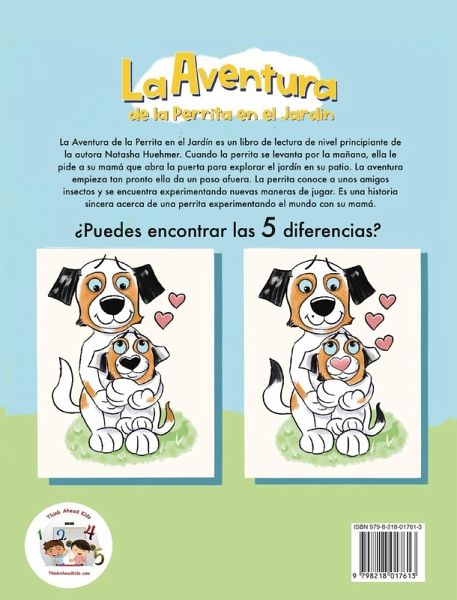 La Aventura de la Perrita en el Jardín es un libro de lectura de nivel principiante de la autora Natasha Huehmer. Cuando la perrita se levanta por la mañana, ella le pide a su mamá que abra la puerta para explorar el jardín en su patio. La aventura empieza tan pronto ella da un paso afuera. La perrita conoce a unos amigos insectos y se encuentra experimentando nuevas maneras de jugar. Es una historia sincera acerca de una perrita experimentando el mundo con su mamá.