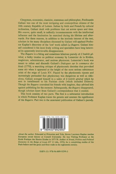 It is my hope that this publication of a "lost" work by Galiani will interest scholars of many nations and disciplines. Few writers could make a more compelling claim upon such a cosmopolitan audience. An Italian with deep roots in his homeland, Galiani achieved celebrity in the salons of Paris. An ecclesiastic, his most notable concerns were worldly, to say the least. An erudite classicist, Galiani was passionately concerned about economics and technology. A philosophe and ostensibly something of a subversive, he was enthralled by power and he served for many years as a government agent and adviser at home and abroad. Galiani embodied many of the preoccupations and paradoxes of the Enlightenment. His torians and literary analysts devoted to the study of the lumie'res through out Europe are bound to find Galiani's work important. In recent years there has been an efflorescence of interest in the history of political economy and its relationship not only to the history of ideas but also to the history of social structure, economic development, admin istrative institutions, collective mentalities, and political mobilization. Galiani's work helps to crystalize many of these connections which scholarly specialization has tended to obscure. Galiani had a leading voice in one of the most significant debates in the eighteenth century on the implications of radical economic, social, and institutional change.