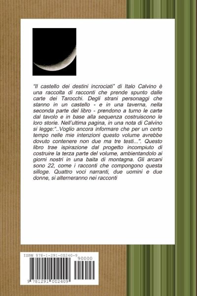 "Il castello dei destini incrociati" di Italo Calvino è una raccolta di racconti che prende spunto dalle carte dei Tarocchi. Degli strani personaggi che stanno in un castello - e in una taverna, nella seconda parte del libro - prendono a turno le carte dal tavolo e in base alla sequenza costruiscono le loro storie. Nell'ultima pagina, in una nota di Calvino si legge:"..Voglio ancora informare che per un certo tempo nelle mie intenzioni questo volume avrebbe dovuto contenere non due ma tre testi...". Questo libro trae ispirazione dal progetto incompiuto di costruire la terza parte del volume, ambientandolo ai giorni nostri in una baita di montagna. Gli arcani sono 22, come i racconti che compongono questa silloge. Quattro voci narranti, due uomini e due donne, si alterneranno nei racconti