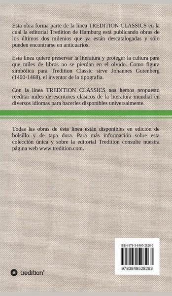 Esta obra (libro de tapa dura) forma parte de la línea TREDITION CLASSICS en la cual la editorial tredition de Hamburgo está publicando obras de los últimos dos milenios que ya están descatalogadas y sólo pueden encontrarse en anticuarios. Esta línea quiere preservar la literatura y proteger la cultura para que miles de libros no se pierdan en el olvido. Con la línea TREDITION CLASSICS nos hemos propuesto reeditar miles de escritores clásicos de la literatura mundial en diversos idiomas para hacerles disponibles universalmente.
