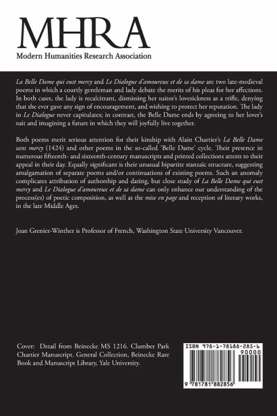 La Belle Dame qui eust mercy and Le Dialogue d’amoureux et de sa dame are two late-medieval poems in which a courtly gentleman and lady debate the merits of his pleas for her affections. In both cases, the lady is recalcitrant, dismissing her suitor’s lovesickness as a trifle, denying that she ever gave any sign of encouragement, and wishing to protect her reputation. The lady in Le Dialogue never capitulates; in contrast, the Belle Dame ends by agreeing to her lover’s suit and imagining a future in which they will joyfully live together. Both poems merit serious attention for their kinship with Alain Chartier’s La Belle Dame sans mercy (1424) and other poems in the so-called "Belle Dame" cycle. Their presence in numerous fifteenth- and sixteenth-century manuscript and printed collections attests to their appeal in their day. Equally as significant is their unusual bipartite stanzaïc structure, suggesting amalgamation of separate poems and/or continuations of existing poems. Such an anomaly complicates attribution of authorship and dating, but close study of La Belle Dame qui eust mercy and Le Dialogue d’amoureux et de sa dame can only enhance our understanding of the process(es) of poetic composition, as well as the mise en page and reception of literary works, in the late Middle Ages.