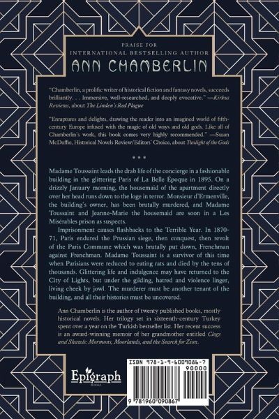 Madame Toussaint leads the drab life of the concierge in a fashionable building in the glittering Paris of La Belle Époque in 1895. On a drizzly January morning, the housemaid of the apartment directly over her head runs down to the loge in terror. Monsieur d'Ermenville, the building's owner, has been brutally murdered, and Madame Toussaint and Jeanne-Marie the housemaid are soon in a Les Misérables prison as suspects. Imprisonment causes flashbacks to the Terrible Year. In 1870-71, Paris endured the Prussian siege, then conquest, then revolt of the Paris Commune which was brutally put down, Frenchman against Frenchman. Madame Toussaint is a survivor of this time when Parisians were reduced to eating rats and died by the tens of thousands. Glittering life and indulgence may have returned to the City of Lights, but under the gilding, hatred and violence linger, living cheek by jowl. The murderer must be another tenant of the building, and all their histories must be uncovered.