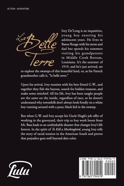 Ivey De'Long is an inquisitive, young boy entering his adolescent years. He lives in Baton Rouge with his mom and dad but spends his summers visiting his grandparents in Middle Creek Bottom, Louisiana. It's the summer of 1919, and he's just arrived, set to explore the swamps of this beautiful land, or, as his French grandmother calls it, "la belle terre." Upon his arrival, Ivey reunites with his best friend G.W., and together they fish the bayous, search for hidden treasure, and make some mischief. All his life, Ivey has been taught people are the same on the inside, regardless of race, so he doesn't understand why townsfolk don't always look fondly on a white boy running around with a poor, black kid in the swamp. In the spirit of To Kill a Mockingbird, young Ivey tells the story of racial tension in the American South and proves that prejudice goes well beyond skin color.