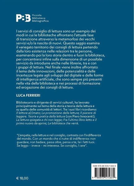 I servizi di consigli di lettura sono un esempio dei modi in cui le biblioteche affrontano l'attuale fase di transizione attraverso la metamorfosi dei vecchi servizi e/o la nascita di nuovi. Questo libro esaminerà il territorio dei consigli di lettura partendo dalla loro storia ed esistenza anche al di fuori dalla biblioteca per poi concentrarsi sulla dimensione di un possibile servizio da introdurre nelle biblioteche, nelle librerie, tra e con i gruppi di lettura. Su questo punto si azzarda una diagnosi di maturità oggettiva e di debolezza soggettiva riferita all'attuale situazione italiana. Perché questo servizio, se vuole evitare di ripetere i suoi peccati originali, potrà crescere solo in modo condiviso e cooperativo. Das Urheberrecht an bibliographischen und produktbeschreibenden Daten und an den bereitgestellten Bildern liegt bei Informazioni Editoriali, I.E. S.r.l., oder beim Herausgeber oder demjenigen, der die Genehmigung erteilt hat. Alle Rechte vorbehalten.
