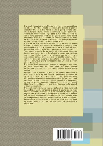 Per secoli l'umanità è stata afflitta da una visione antropocentrica di se stessa che l'ha condotta a considerarsi signora e padrona assoluta del mondo e della natura. In virtù di questa opinione tutto il creato, la terra, i fiumi, i monti, lo sterminato universo della flora e della fauna, nonché quello dei paesaggi e degli ambienti, quella che con termine scientifico all'interno di questo studio viene definita biodiversità, sono stati considerati al servizio esclusivo dell'uomo, del suo benessere e del suo progresso, quasi fossero dei servitori nati con l'unico scopo di obbedire ai desideri umani.