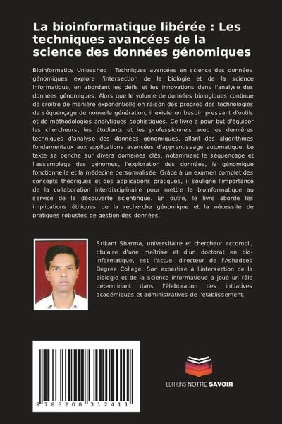 Bioinformatics Unleashed : Techniques avancées en science des données génomiques explore l'intersection de la biologie et de la science informatique, en abordant les défis et les innovations dans l'analyse des données génomiques. Alors que le volume de données biologiques continue de croître de manière exponentielle en raison des progrès des technologies de séquençage de nouvelle génération, il existe un besoin pressant d'outils et de méthodologies analytiques sophistiqués. Ce livre a pour but d'équiper les chercheurs, les étudiants et les professionnels avec les dernières techniques d'analyse des données génomiques, allant des algorithmes fondamentaux aux applications avancées d'apprentissage automatique. Le texte se penche sur divers domaines clés, notamment le séquençage et l'assemblage des génomes, l'exploration des données, la génomique fonctionnelle et la médecine personnalisée. Grâce à un examen complet des concepts théoriques et des applications pratiques, il souligne l'importance de la collaboration interdisciplinaire pour mettre la bioinformatique au service de la découverte scientifique. En outre, le livre aborde les implications éthiques de la recherche génomique et la nécessité de pratiques robustes de gestion des données.