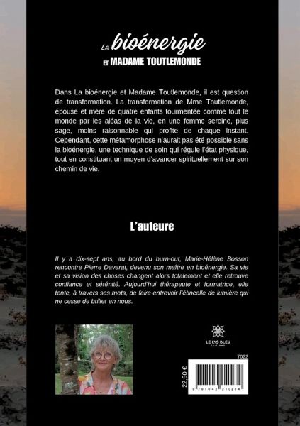 Dans La bioénergie et Madame Toutlemonde, il est question de transformation. La transformation de Mme Toutlemonde, épouse et mère de quatre enfants tourmentée comme tout le monde par les aléas de la vie, en une femme sereine, plus sage, moins raisonnable qui profite de chaque instant. Cependant, cette métamorphose n'aurait pas été possible sans la bioénergie, une technique de soin qui régule l'état physique, tout en constituant un moyen d'avancer spirituellement sur son chemin de vie.