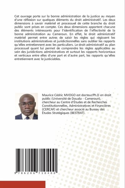 Cet ouvrage porte sur la bonne administration de la justice au moyen d'une réflexion sur quelques éléments du droit administratif. Les deux dimensions à savoir matériel et processuel de cette branche du droit public sont prises en compte. Ces deux dimensions apportent chacune des éléments intéressants pour l'identification de l'effectivité de la bonne administration au Cameroun. En effet, le droit administratif matériel permet entre autres de saisir les règles qui régissent les institutions administratives et juridictionnelles sans oublier les rapports qu'elles entretiennent avec les particuliers. Le droit administratif au plan processuel quant lui permet de comprendre les règles applicables au sein des juridictions administratives et surtout les rapports horizontaux et verticaux entre elles d'une part et d'autre part, les rapports qu'elles entretiennent avec le justiciables.
