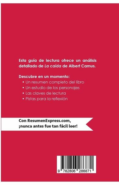 ResumenExpress.com presenta y analiza en esta guía de lectura La caída, una novela filosófica del célebre escritor francés Albert Camus. Esta obra es la confesión de Jean-Baptiste Clamence, un hombre que pasa de amar la vida a condenarla y que, a través de la miseria humana, nos lleva a la reflexión. Una magnífica obra desarrollada en un Ámsterdam de postguerra que, sin lugar a dudas, nos invitará a replantearnos ciertos conceptos preestablecidos relativos a la naturaleza humana. ¡Ya no tienes que leer y resumir todo el libro, nosotros lo hemos hecho por ti! Esta guía incluye: ¿ Un resumen completo del libro ¿ Un estudio de los personajes ¿ Las claves de lectura ¿ Pistas para la reflexión ¿Por qué elegir ResumenExpress.com? Para aprender de forma rápida. Porque nuestras publicaciones están escritas con un estilo claro y conciso que te ayudará a ganar tiempo y a entender las obras sin esfuerzo. Disponibles en formato impreso y digital, te acompañarán en tu aventura literaria. Toma una dosis de literatura acelerada con ResumenExpress.com
