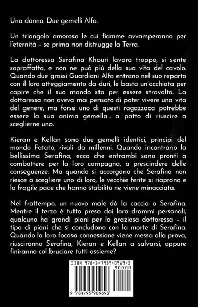 Una donna. Due gemelli Alfa. Un triangolo amoroso le cui fiamme avvamperanno per l'eternità - se prima non distrugge la Terra. La dottoressa Serafina Khouri lavora troppo, si sente sopraffatta, e non ne può più della sua vita del cavolo. Quando due grossi Guardiani Alfa entrano nel suo reparto con il loro atteggiamento da duri, le basta un'occhiata per capire che il suo mondo sta per essere stravolto. La dottoressa non aveva mai pensato di poter vivere una vita del genere, ma forse uno di questi ragazzacci potrebbe essere la sua anima gemella... a patto di riuscire a sceglierne uno. Kieran e Kellan sono due gemelli identici, principi del mondo Fatato, rivali da millenni. Quando incontrano la bellissima Serafina, ecco che entrambi sono pronti a combattere per la loro compagna, a prescindere delle conseguenze. Ma quando si accorgono che Serafina non riesce a scegliere uno di loro, le vecchie ferite si riaprono e la fragile pace che hanno stabilito ne viene minacciata. Nel frattempo, un nuovo male dà la caccia a Serafina. Mentre il terzo è tutto preso dai loro drammi personali, qualcuno ha grandi piani per la graziosa dottoressa - il tipo di piani che si concludono con la morte di Serafina. Quando la loro focosa connessione viene messa alla prova, riusciranno Serafina, Kieran e Kellan a salvarsi, oppure finiranno col bruciare tutti assieme?