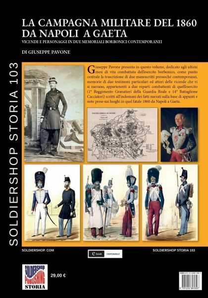 Giuseppe Pavone presenta in questo volume, dedicato agli ultimi mesi di vita combattuta dell'esercito borbonico, come punto centrale la trascrizione di due manoscritti pressoché contemporanei, memorie di due testimoni particolari ed attori delle vicende che vi si narrano, appartenenti a due reparti combattenti di quell'esercito (1° Reggimento Granatieri della Guardia Reale e 14° Battaglione Cacciatori) scritti all'indomani dei fatti narrati sulla base di appunti e note prese sui luoghi in quel fatale 1860 da Napoli a Gaeta.
