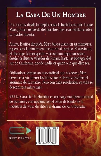 Una cicatriz desde la mejilla hasta la barbilla es todo lo que Marc Jordan recuerda del hombre que se arrodillaba sobre su madre muerta. Ahora, 15 años después, Marc busca pistas en su memoria; espera ser el primero en encontrar al asesino. El asesinato, el chantaje, la corrupción y la traición dejan un rastro desde los ilustres viñedos de España hasta las bodegas del sur de California, donde nadie es quien o lo que dice ser. Obligado a aceptar un caso judicial que no desea, Marc desenreda sin querer los hilos que le llevan a resolver el asesinato de su madre. Pero con cada revelación, su vida se descontrola más y más. ### La Cara De Un Hombre es una saga multigeneracional de traición y corrupción, con el telón de fondo de la industria del vino de élite y el drama de los tribunales.