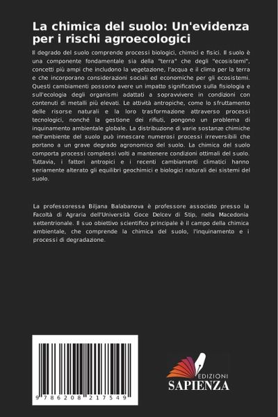 Il degrado del suolo comprende processi biologici, chimici e fisici. Il suolo è una componente fondamentale sia della "terra" che degli "ecosistemi", concetti più ampi che includono la vegetazione, l'acqua e il clima per la terra e che incorporano considerazioni sociali ed economiche per gli ecosistemi. Questi cambiamenti possono avere un impatto significativo sulla fisiologia e sull'ecologia degli organismi adattati a sopravvivere in condizioni con contenuti di metalli più elevati. Le attività antropiche, come lo sfruttamento delle risorse naturali e la loro trasformazione attraverso processi tecnologici, nonché la gestione dei rifiuti, pongono un problema di inquinamento ambientale globale. La distribuzione di varie sostanze chimiche nell'ambiente del suolo può innescare numerosi processi irreversibili che portano a un grave degrado agronomico del suolo. La chimica del suolo comporta processi complessi volti a mantenere condizioni ottimali del suolo. Tuttavia, i fattori antropici e i recenti cambiamenti climatici hanno seriamente alterato gli equilibri geochimici e biologici naturali dei sistemi del suolo.