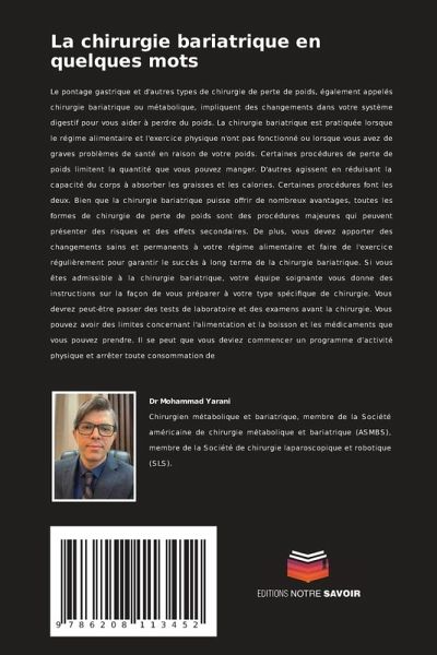 Le pontage gastrique et d'autres types de chirurgie de perte de poids, également appelés chirurgie bariatrique ou métabolique, impliquent des changements dans votre système digestif pour vous aider à perdre du poids. La chirurgie bariatrique est pratiquée lorsque le régime alimentaire et l'exercice physique n'ont pas fonctionné ou lorsque vous avez de graves problèmes de santé en raison de votre poids. Certaines procédures de perte de poids limitent la quantité que vous pouvez manger. D'autres agissent en réduisant la capacité du corps à absorber les graisses et les calories. Certaines procédures font les deux. Bien que la chirurgie bariatrique puisse offrir de nombreux avantages, toutes les formes de chirurgie de perte de poids sont des procédures majeures qui peuvent présenter des risques et des effets secondaires. De plus, vous devez apporter des changements sains et permanents à votre régime alimentaire et faire de l'exercice régulièrement pour garantir le succès à long terme de la chirurgie bariatrique. Si vous êtes admissible à la chirurgie bariatrique, votre équipe soignante vous donne des instructions sur la façon de vous préparer à votre type spécifique de chirurgie. Vous devrez peut-être passer des tests de laboratoire et des examens avant la chirurgie. Vous pouvez avoir des limites concernant l'alimentation et la boisson et les médicaments que vous pouvez prendre. Il se peut que vous deviez commencer un programme d'activité physique et arrêter toute consommation de