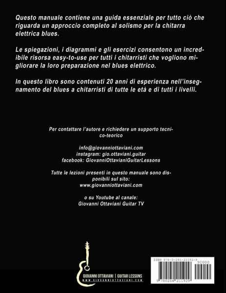 All'interno di questo manuale è contenuto un percorso completo per chi vuole avvicinarsi alla chitarra blues, ma anche per chi vuole migliorare la sua attuale preparazione. Gli esercizi contenuti consentono un percorso step by step in grado di velocizzare i tempi di apprendimento tramite una serie di attività funzionali alla ricerca dello stile tipico del fraseggio blues. Imparare a suonare nello stile di B.B. King, Eric Clapton, Muddy Waters, Albert Collins, e molti altri, è dunque facile grazie a questo manuale.