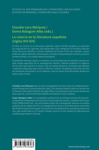 El libro La ciencia en la literatura española (siglos XVI-XIX) propone un recorrido por algunos de los capítulos más destacados que configuran la fructífera relación entre discurso científico y ficción mediante la lectura crítica de tratados, corpus poéticos, piezas teatrales, almanaques y novelas compuestos por autores y autoras pertenecientes a un amplio abanico temporal. El presente volumen aspira a mantener la continuidad de los estudios insertos en este campo específico de la investigación literaria. Además evidencia la vigencia de las tesis que asocian la ciencia con los textos literarios, al tiempo que plantea cuestiones originales que invitan a efectuar análisis novedosos acerca de escritos escasamente conocidos o, en su defecto, a leer las obras más difundidas desde una óptica poco común.