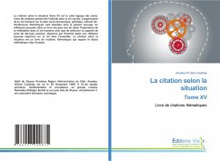 La citation selon la situation Tome XV est la suite logique des autres livres de citations parlant de l'individu dans la vie sociale. L'organisation de la vie humaine sur le plan socio-économique, politique, culturel etc. Nombreuses thématiques sont abordées dans le présent ouvrage, les réflexions poussées dans ce livre ont pour but de situer l'importance de la méditation dans la vie humaine ainsi que de renforcer la capacité de prise de décision positive, objective par l'homme après une réflexion poussée objective sur la vie dans l'ensemble. La citation selon la situation est un livre de citations thématiques qui aiguise le doute méthodique chez l'humain.