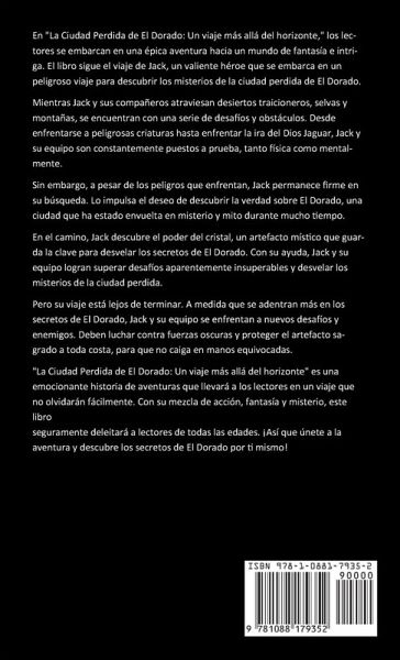 En "La Ciudad Perdida de El Dorado: Un viaje más allá del horizonte," los lectores se embarcan en una épica aventura hacia un mundo de fantasía e intriga. El libro sigue el viaje de Jack, un valiente héroe que se embarca en un peligroso viaje para descubrir los misterios de la ciudad perdida de El Dorado. Mientras Jack y sus compañeros atraviesan desiertos traicioneros, selvas y montañas, se encuentran con una serie de desafíos y obstáculos. Desde enfrentarse a peligrosas criaturas hasta enfrentar la ira del Dios Jaguar, Jack y su equipo son constantemente puestos a prueba, tanto física como mentalmente. Sin embargo, a pesar de los peligros que enfrentan, Jack permanece firme en su búsqueda. Lo impulsa el deseo de descubrir la verdad sobre El Dorado, una ciudad que ha estado envuelta en misterio y mito durante mucho tiempo. En el camino, Jack descubre el poder del cristal, un artefacto místico que guarda la clave para desvelar los secretos de El Dorado. Con su ayuda, Jack y su equipo logran superar desafíos aparentemente insuperables y desvelar los misterios de la ciudad perdida. Pero su viaje está lejos de terminar. A medida que se adentran más en los secretos de El Dorado, Jack y su equipo se enfrentan a nuevos desafíos y enemigos. Deben luchar contra fuerzas oscuras y proteger el artefacto sagrado a toda costa, para que no caiga en manos equivocadas. "La Ciudad Perdida de El Dorado: Un viaje más allá del horizonte" es una emocionante historia de aventuras que llevará a los lectores en un viaje que no olvidarán fácilmente. Con su mezcla de acción, fantasía y misterio, este libro seguramente deleitará a lectores de todas las edades. ¡Así que únete a la aventura y descubre los secretos de El Dorado por ti mismo!