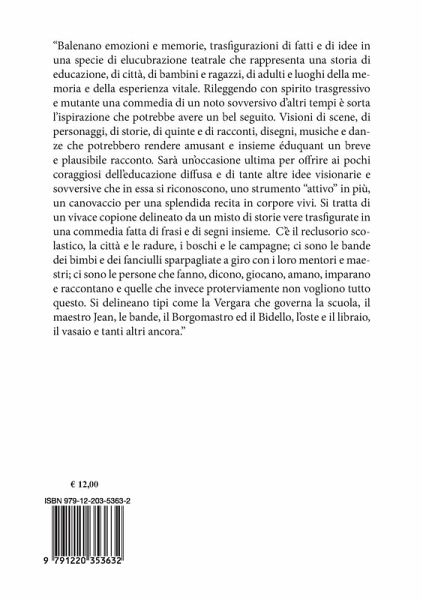 Il libro contiene un divertissement offerto a chi volesse cimentarsi nella recitazione, nel costruire scene e nell'adattare alla propria realtà questa pièce teatrale breve e fattibile da bambini, ragazzi, adulti insieme per raccontare o sognare l'educazione diffusa. Una voce narrante, dialoghi quanto basta, movimento di corpi e di paesaggi, colori, rumori, luci e nature e un corredo di immagini per suggerire le scenografie.